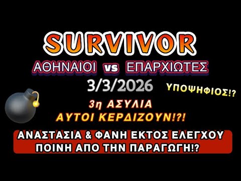 SURVIVOR SPOILER 3/3/2026 ΑΣΥΛΙΑ ΑΥΤΟΙ ΚΕΡΔΙΖΟΥΝ!?! 3ος ΥΠΟΨΗΦΙΟΣ!? ΦΑΝΗ ΚΑΙ ΑΝΑΣΤΑΣΙΑ ΕΚΤΟΣ ΕΛΕΓΧΟΥ …