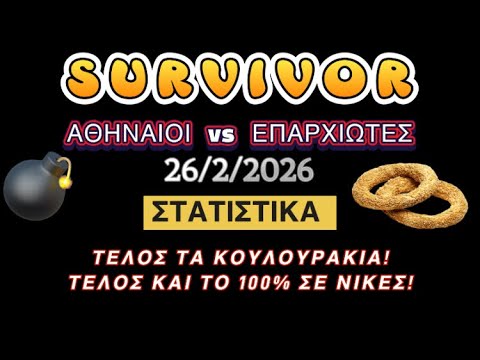 SURVIVOR 26/2/2026 ΣΤΑΤΙΣΤΙΚΑ ΤΕΛΟΣ ΤΑ ΚΟΥΛΟΥΡΑΚΙΑ! ΤΕΛΟΣ ΚΑΙ ΤΟ 100% ΣΕ ΝΙΚΕΣ! #survivor2026 #survivorgr …