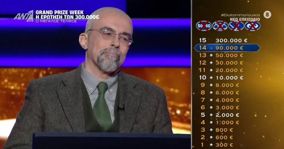 Ο Λευτέρης Σκόνδρας, πήρε τα 90.000 ευρώ και σταμάτησε πριν από την ερώτηση των 300.000 ευρώ στο τηλεπαιχνίδι «Ποιος θέλει να γίνει εκατομμυριούχος».