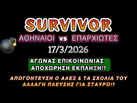 SURVIVOR 17/3/2026 ΑΓΩΝΑΣ ΕΠΑΘΛΟΥ ΑΠΟΧΩΡΗΣΗ ΕΚΠΛΗΞΗ!? ΑΠΟΓΟΗΤΕΥΣΗ Ο ΑΛΕΞ & ΤΑ ΣΧΟΛΙΑ ΤΟΥ…