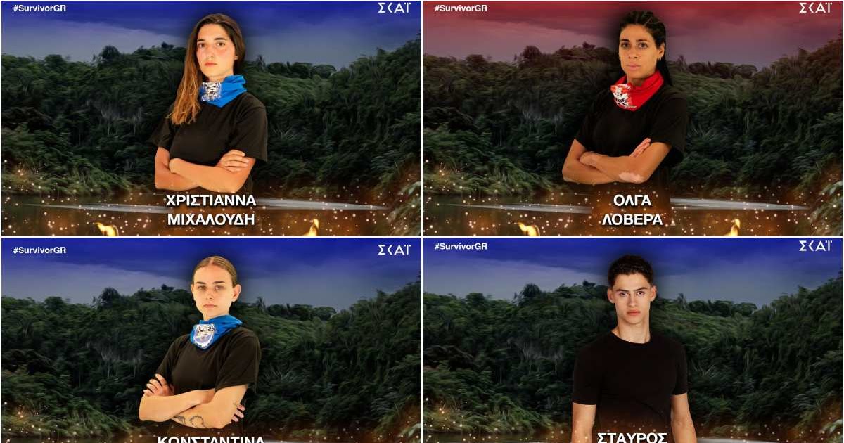 Χριστιάννα Μιχαλούδη, Όλγα Λοβέρα, Κωνσταντίνα Μπακαρού και Σταύρος Φλώρος είναι οι τέσσερις υποψήφιοι προς αποχώρηση από το Survivor. Με άλλα λόγια, τρεις νέοι παίκτες -τρεις νέες παίκτριες για την ακρίβεια και ένας από τους παλιούς.