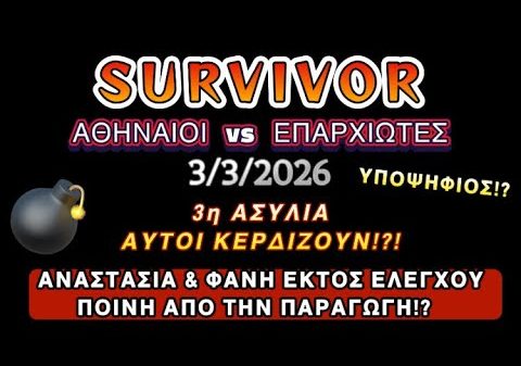 SURVIVOR SPOILER 3/3/2026 ΑΣΥΛΙΑ ΑΥΤΟΙ ΚΕΡΔΙΖΟΥΝ!?! 3ος ΥΠΟΨΗΦΙΟΣ!? ΦΑΝΗ ΚΑΙ ΑΝΑΣΤΑΣΙΑ ΕΚΤΟΣ ΕΛΕΓΧΟΥ … #SURVIVOR #SPOILER #ΑΣΥΛΙΑ #ΑΥΤΟΙ #ΚΕΡΔΙΖΟΥΝ #3ος #ΥΠΟΨΗΦΙΟΣ #ΦΑΝΗ #ΚΑΙ #ΑΝΑΣΤΑΣΙΑ...