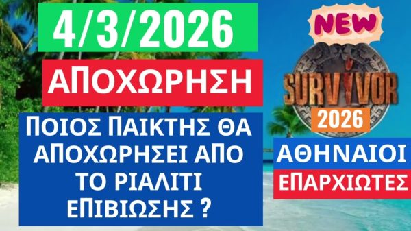 ΕΓΓΡΑΦΗ ΔΩΡΕΑΝ ΕΔΩ : https://www.youtube.com/@TVNEWSGR #SURVIVOR2026 #EXATLON #EXATLON2025 … #SURVIVOR #ΑΠΟΧΩΡΗΣΗ #ΠΟΙΟΣ #ΠΑΙΚΤΗΣ #ΘΑ #ΑΠΟΧΩΡΗΣΕΙ #ΑΠΟ #ΤΟ #ΡΙΑΛΙΤΙ #ΕΠΙΒΙΩΣΗΣ