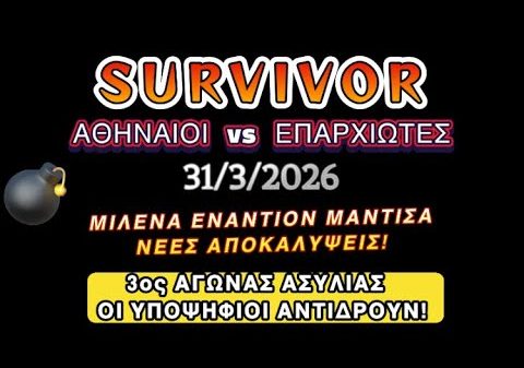 SURVIVOR 31/3/2026 3ος ΑΓΩΝΑΣ ΑΣΥΛΙΑΣ ΟΙ ΥΠΟΨΗΦΙΟΙ ΑΝΤΙΔΡΟΥΝ! ΜΙΛΕΝΑ ΕΝΑΝΤΙΟΝ ΜΑΝΤΙΣΑ! ΑΠΟΚΑΛΥΨΕΙΣ! #SURVIVOR #3ος #ΑΓΩΝΑΣ #ΑΣΥΛΙΑΣ #ΟΙ #ΥΠΟΨΗΦΙΟΙ #ΑΝΤΙΔΡΟΥΝ #ΜΙΛΕΝΑ #ΕΝΑΝΤΙΟΝ #ΜΑΝΤΙΣΑ #ΑΠΟΚΑΛΥΨΕΙΣ
